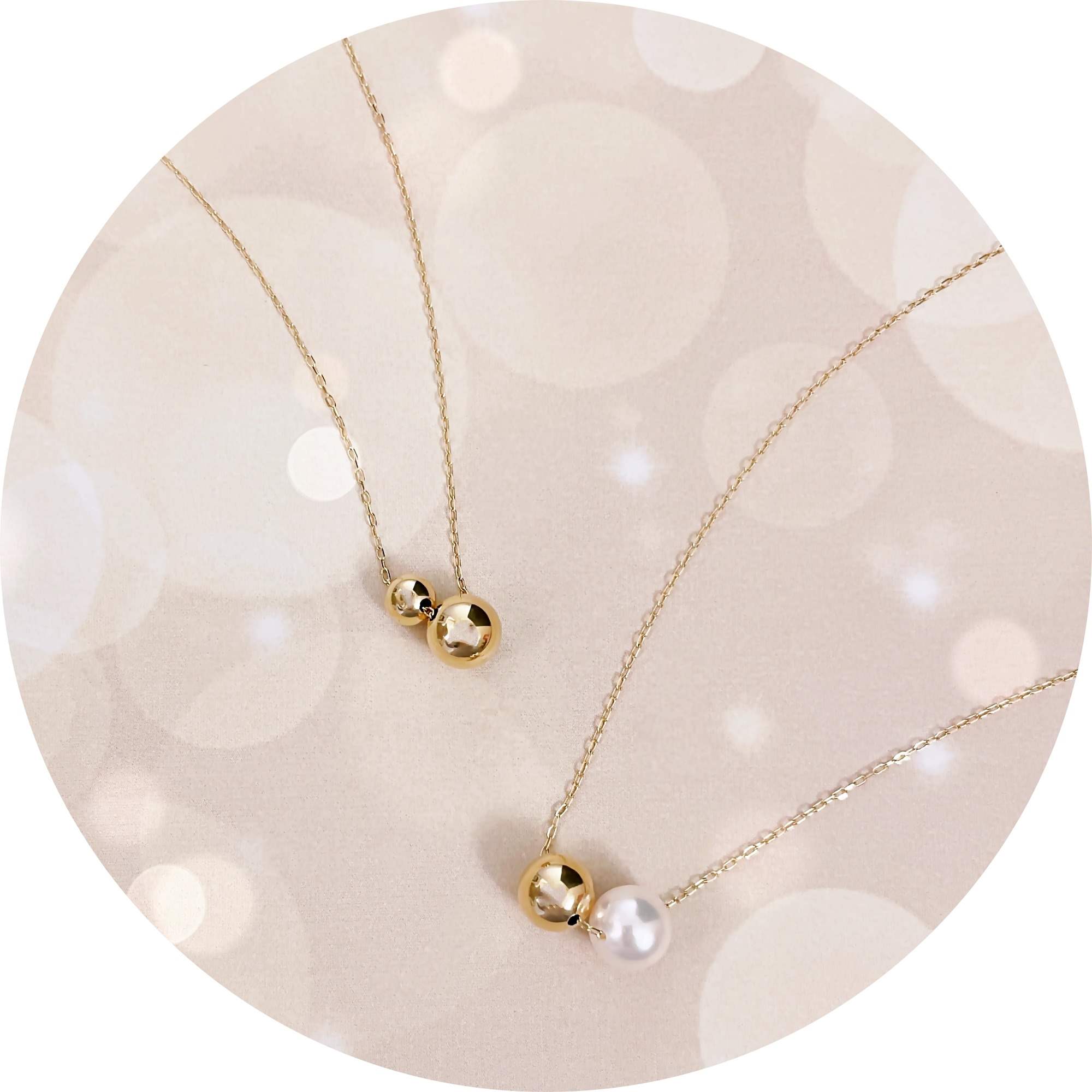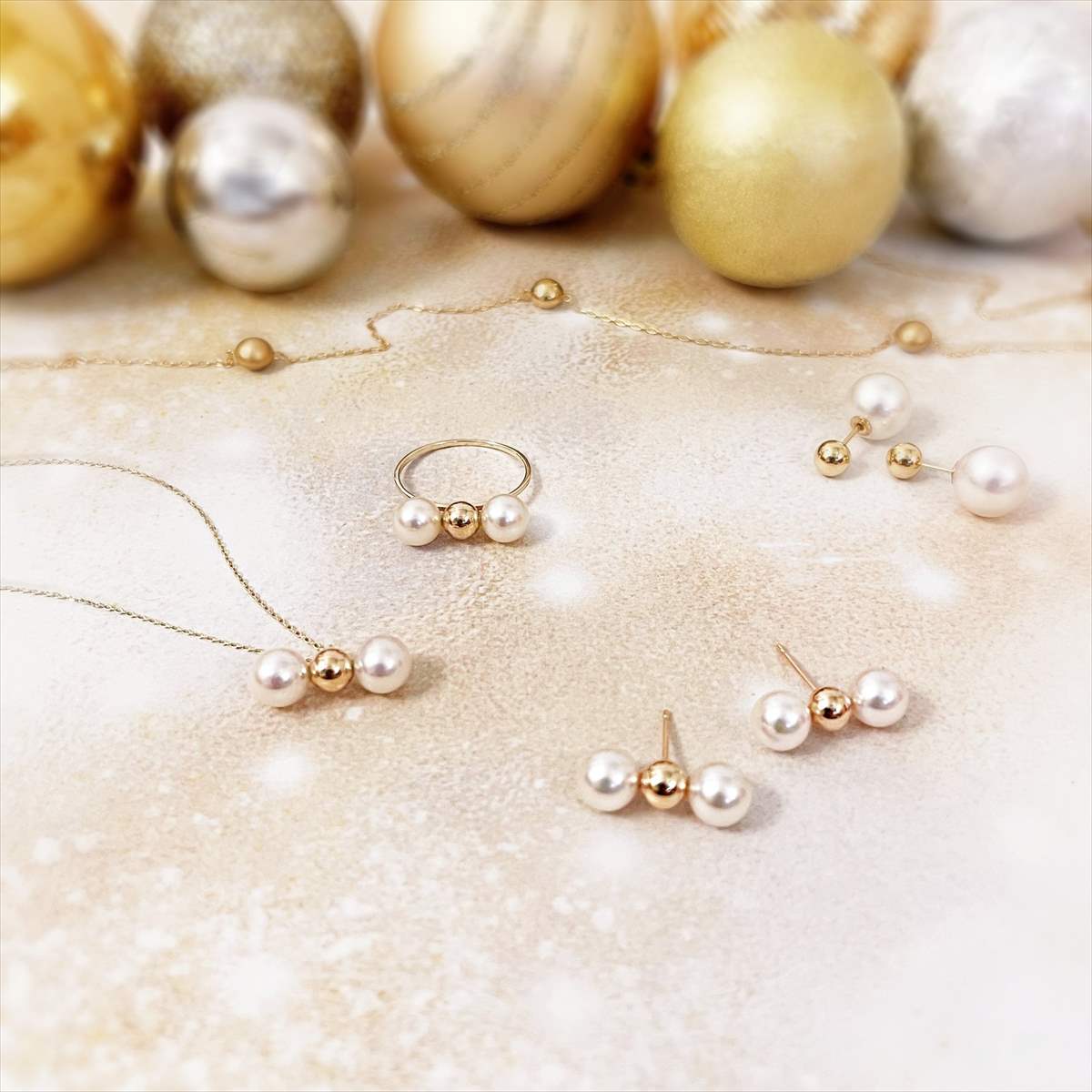 ゴールドやシルバーのメタルボールとパールが並んだ、大人可愛さと今どき感溢れるデザイン。