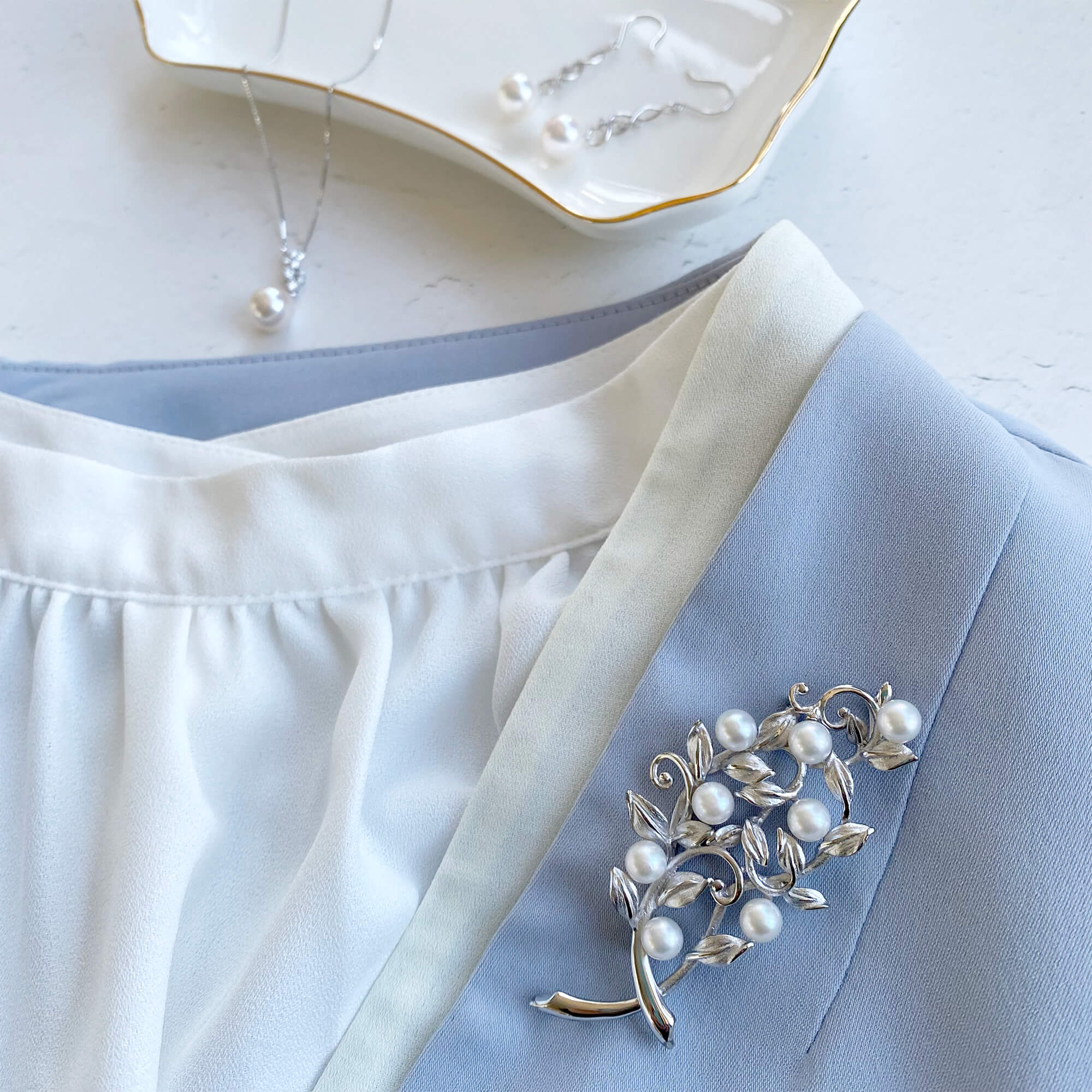 セレモニースーツなどきちんと装いたい時には、パールネックレスと合わせてお付けいただくのもおすすめです。
