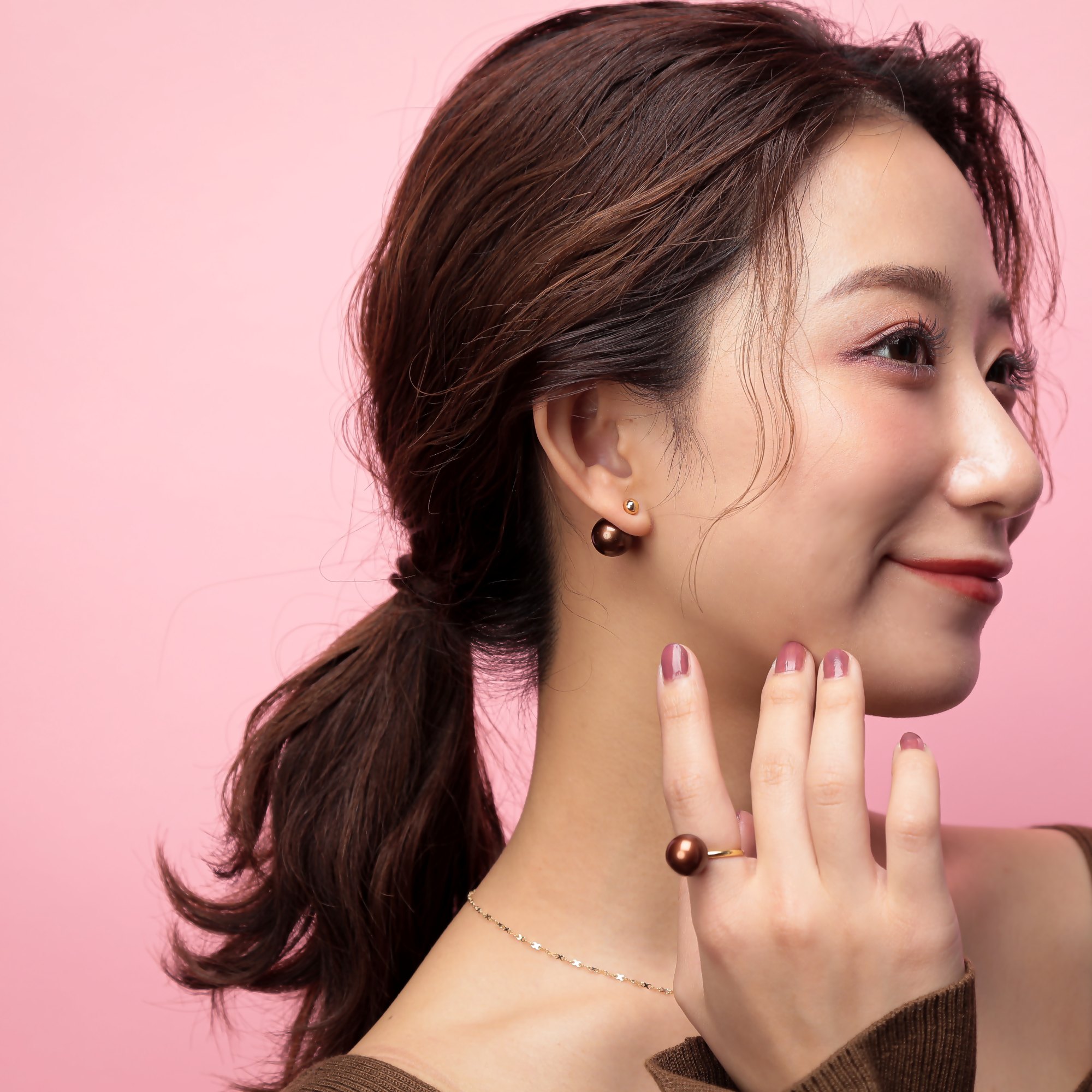 美味しそうな艶やかショコラカラーのパールジュエリー。