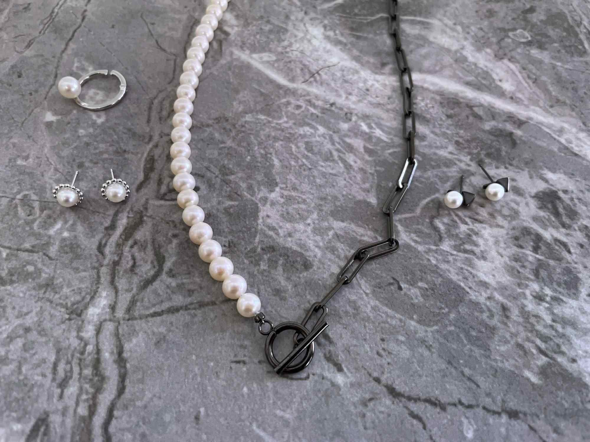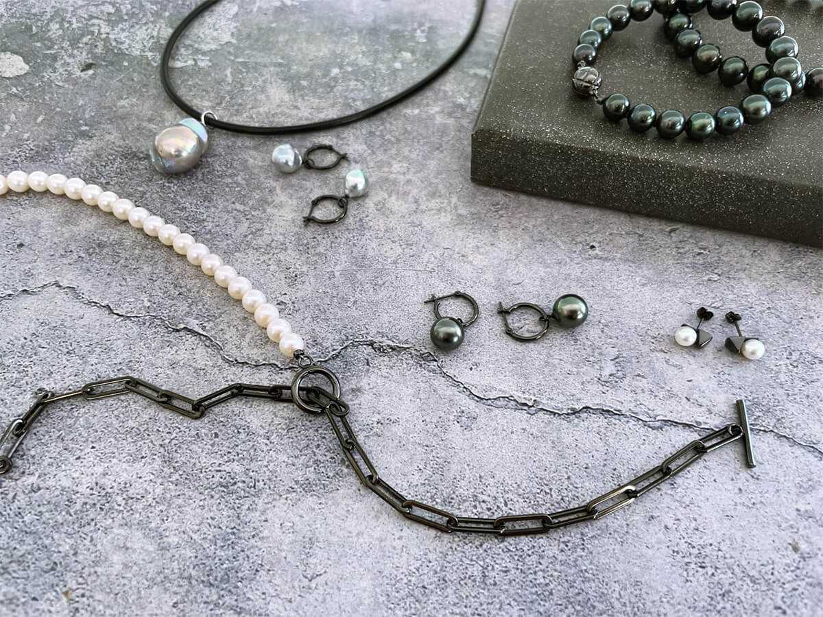 ホワイトパールもブラックパールもすでにお持ちの方におすすめなのが、グレーカラーのパールジュエリー。