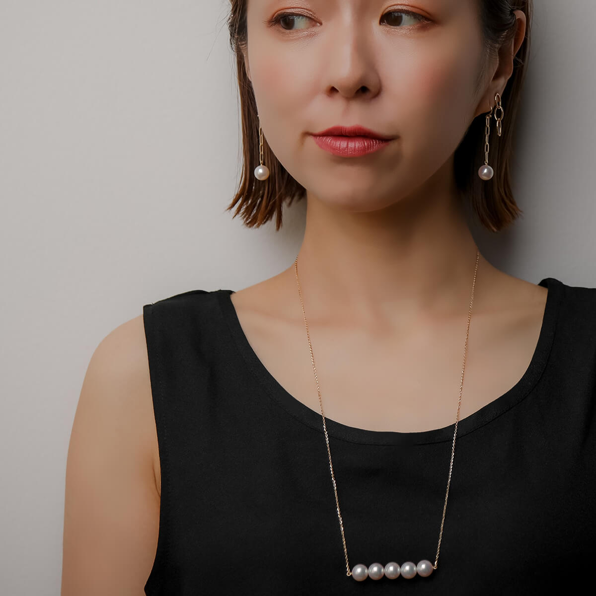 贅沢な「ゴールドチェーン」と「上質パール」のコラボレーションをお楽しみください。