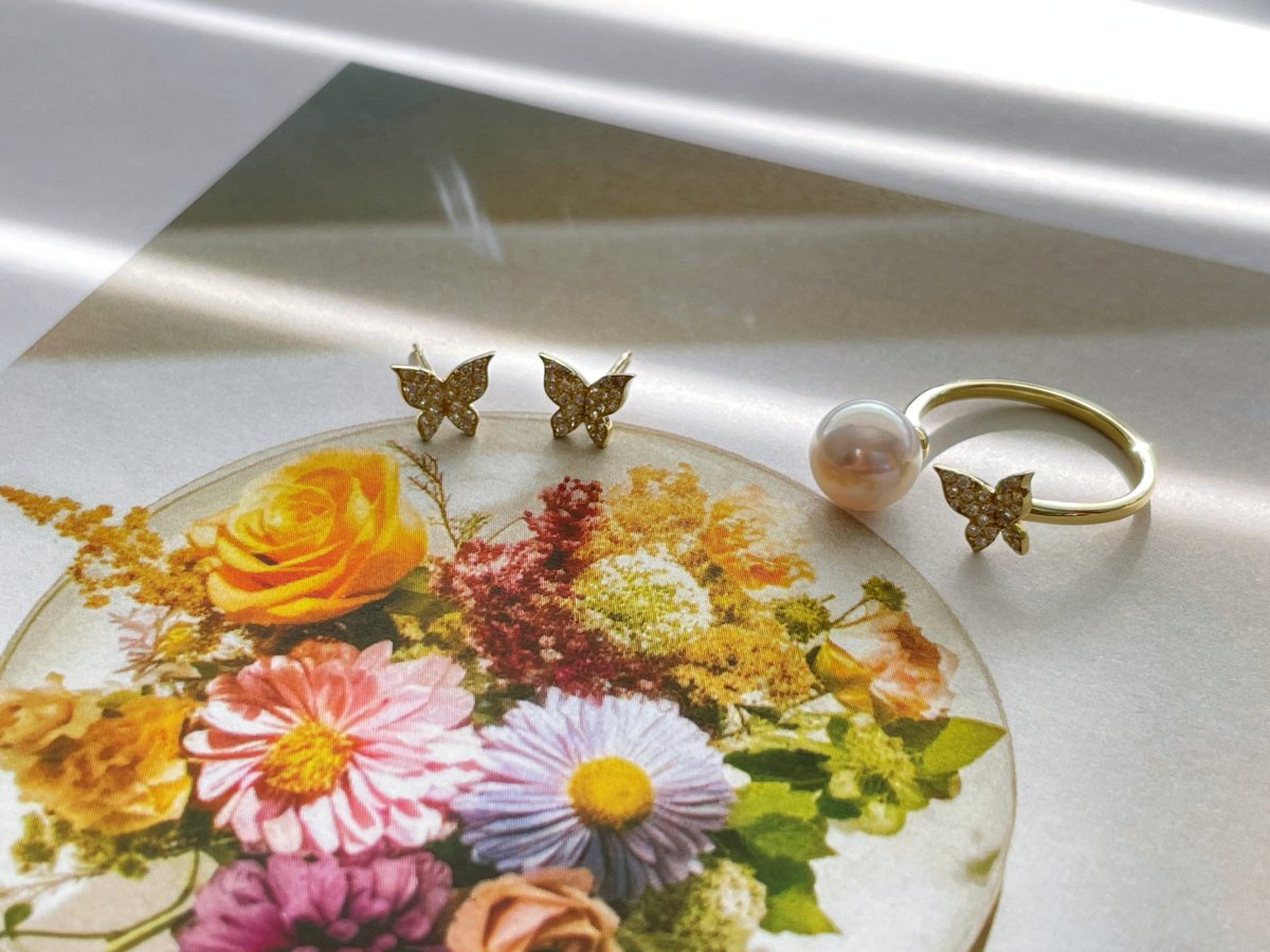 煌めく蝶と上質あこやパールが美しい存在感を放つデザインコレクション。