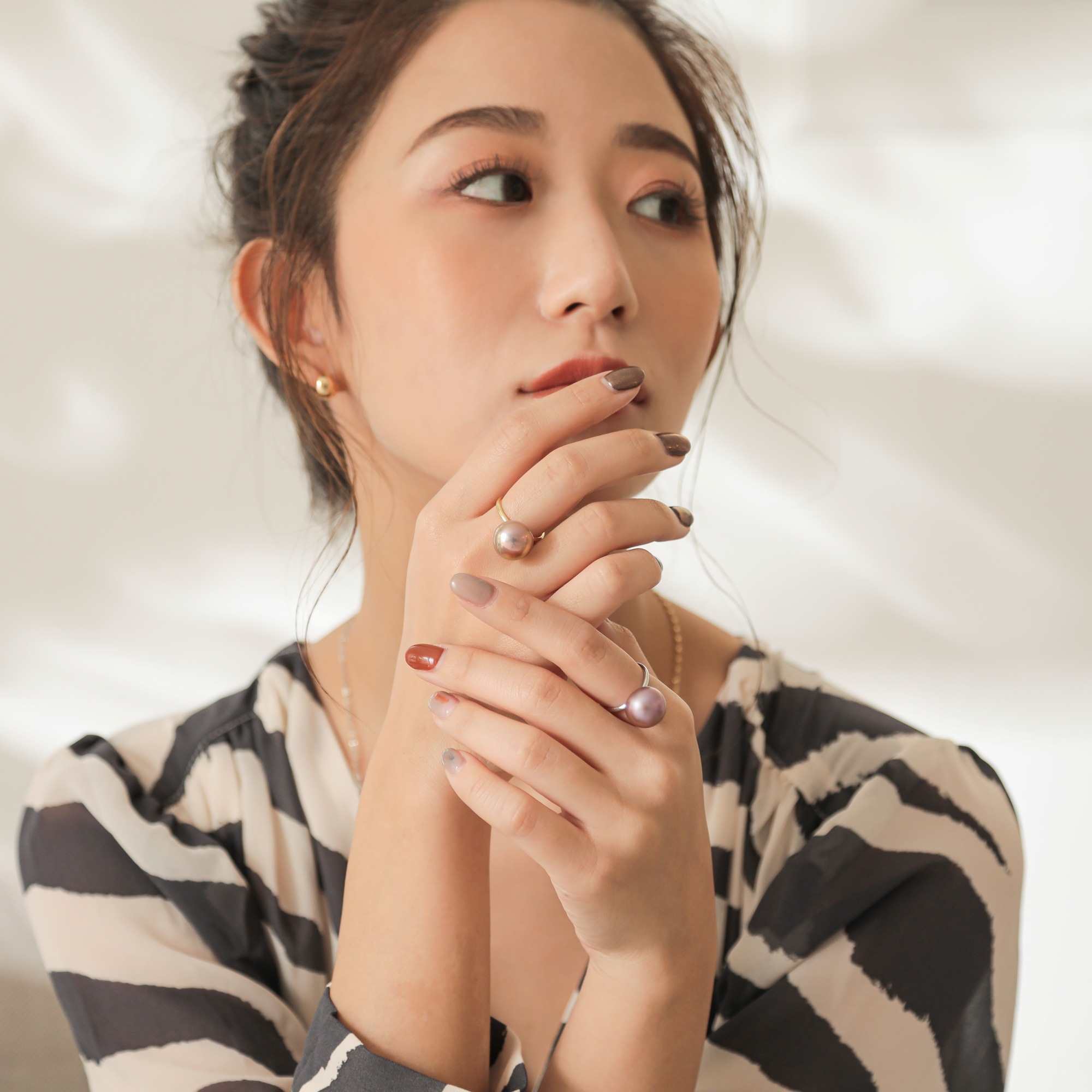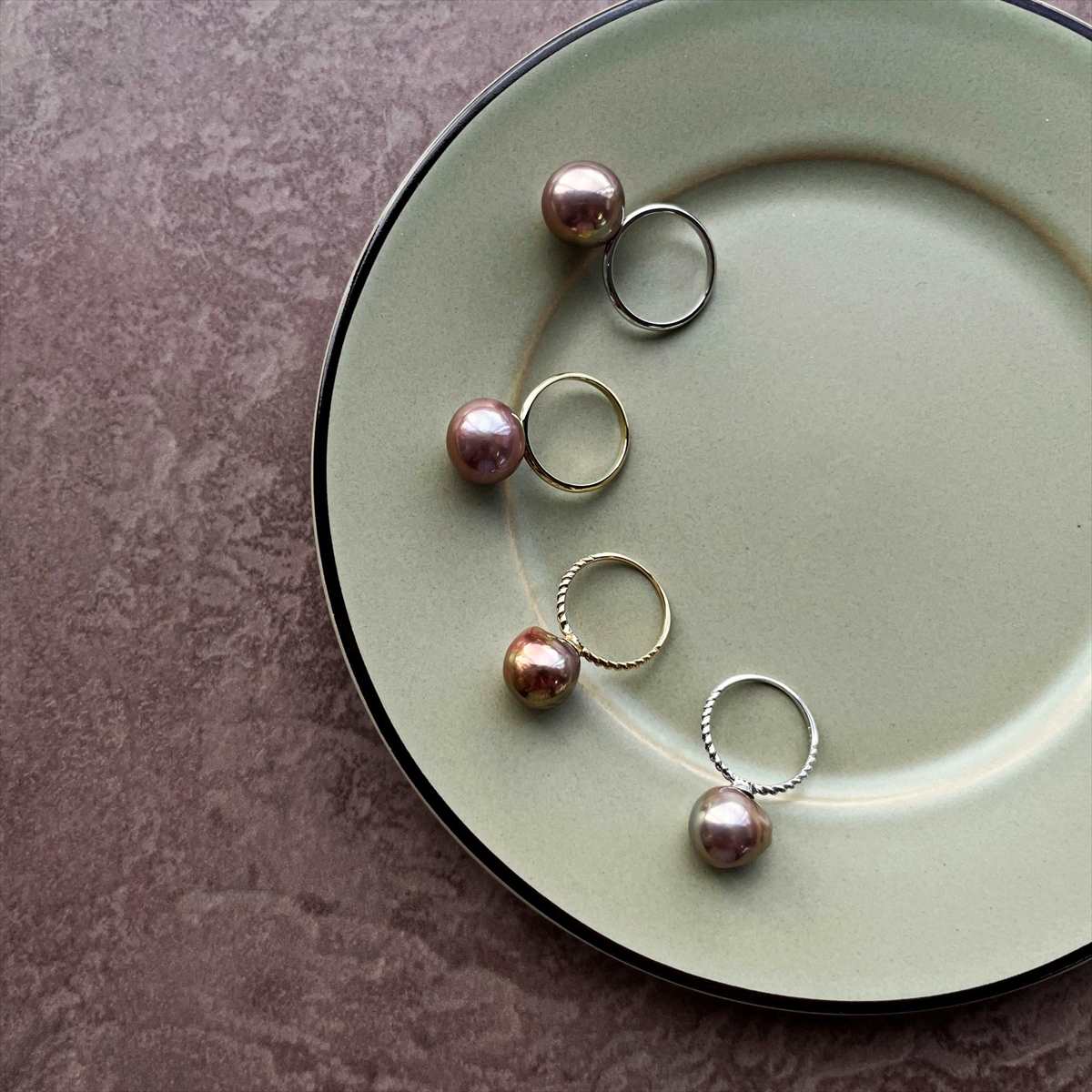 美しくオーロラ干渉色が滲みメタリックな表情を放つパールから、果実のようなみずみずしさが漂う淡く優しいニュアンスカラーのパールまで、ひとつひとつ違った表情をもつその色彩の豊かさに 自然の神秘を感じます。