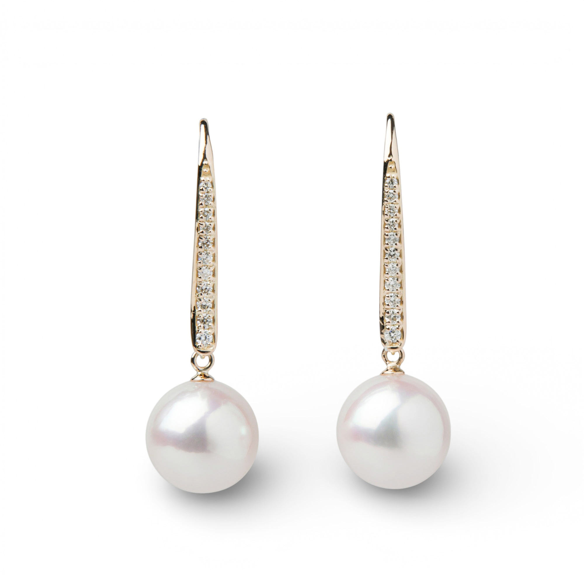 深みのあるタヒチ黒蝶真珠に、繊細なダイヤをあしらったフックピアス。