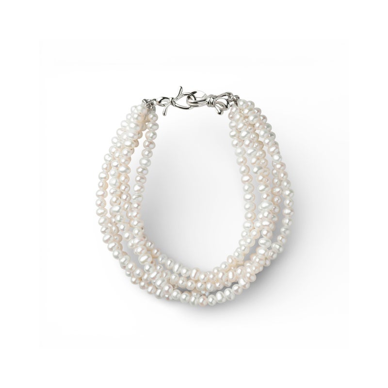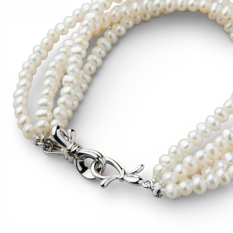 淡水ベビーパールを贅沢に連ねた、5連のブレスレット。小粒ならではの繊細な光が重なり合い、手元にやわらかな華やぎを添えてくれます。