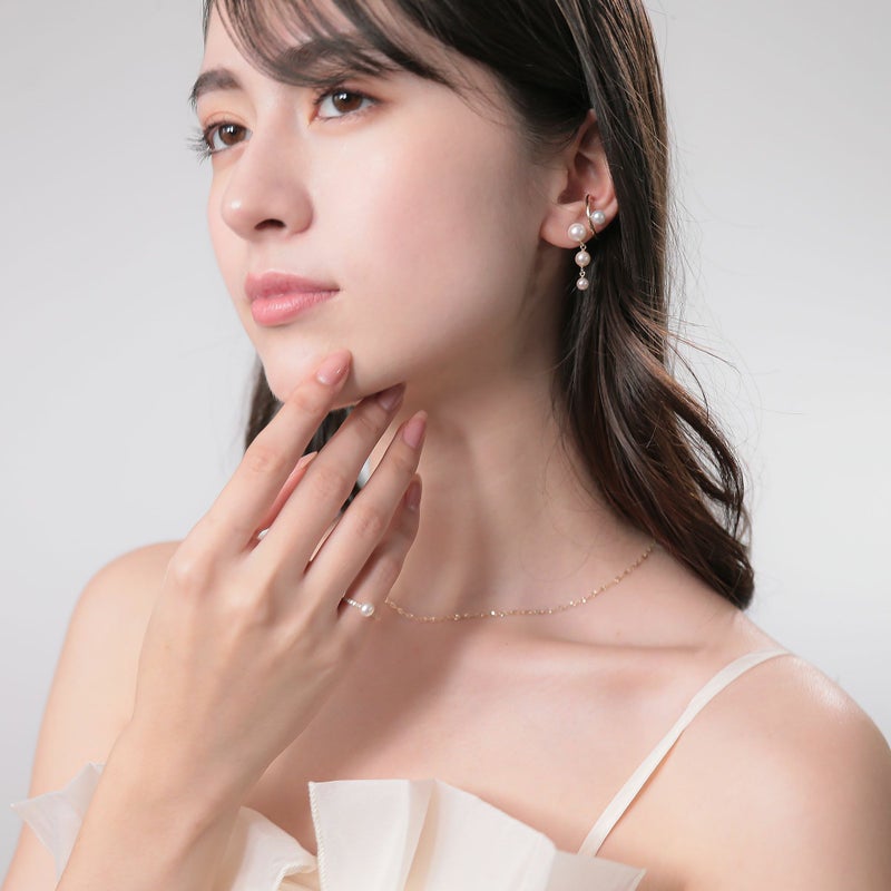 耳元で上品に揺れ、視線を集めるトリプルパールピアス。