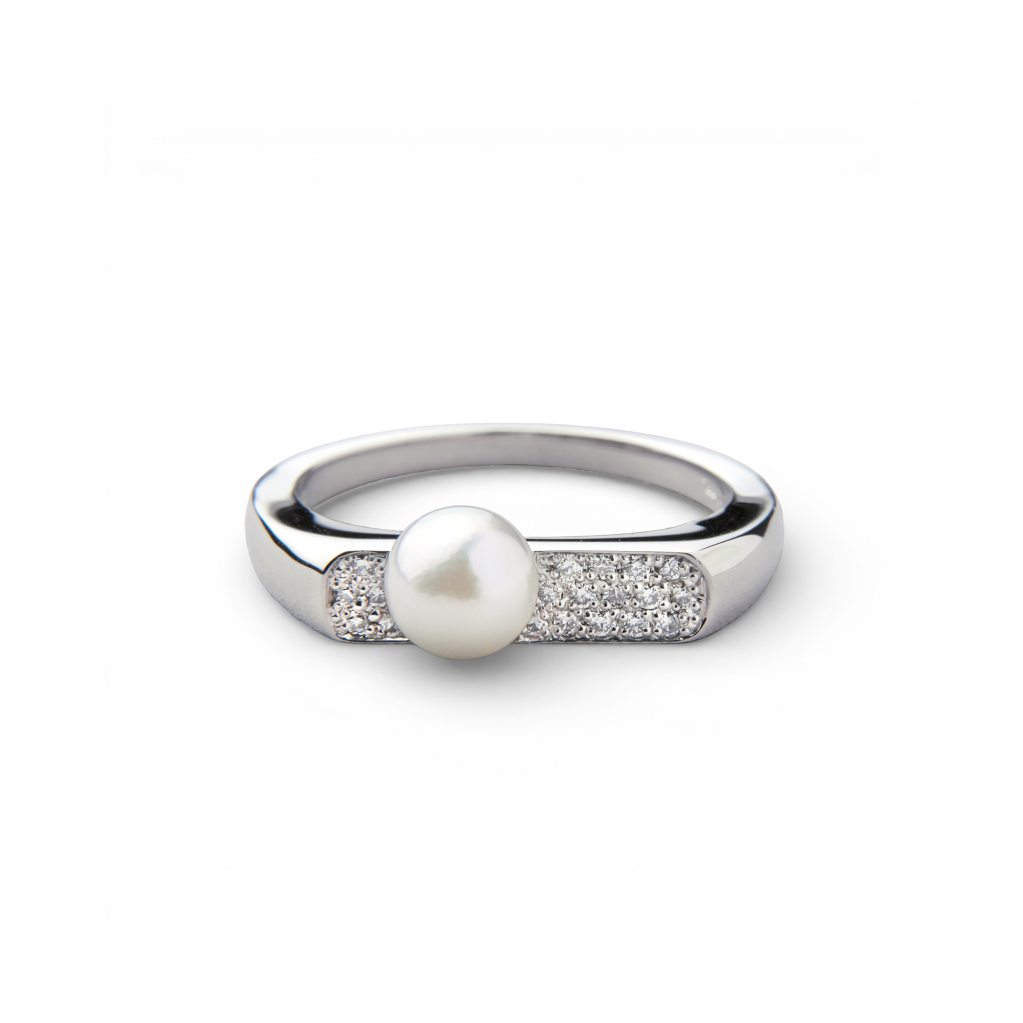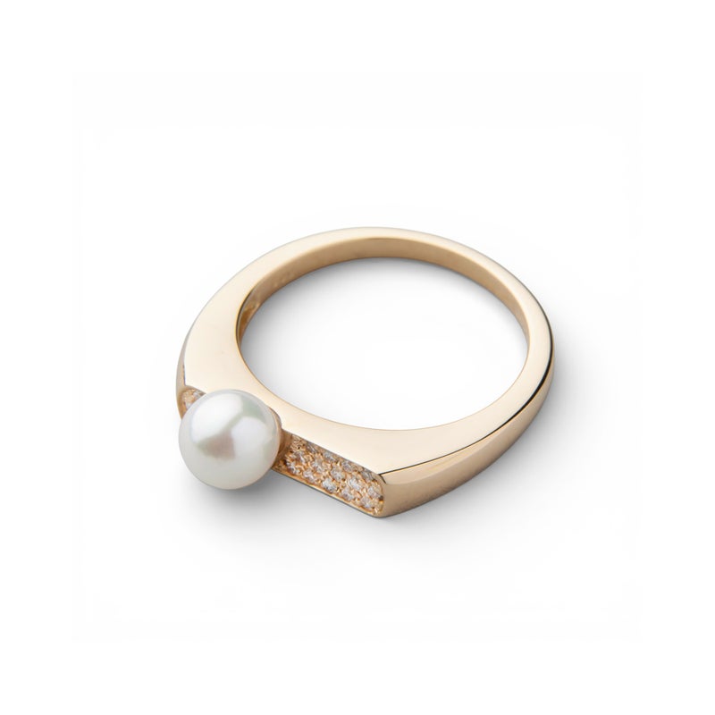 パヴェダイヤのさりげない煌めきと、あこやベビーパールの繊細な光沢が上品さを添え、フェミニンなスタイルにも美しく馴染みます。軽やかな着け心地で、他のリングとの重ね着けも楽しめるデザインです。デイリー使いはもちろん、特別なシーンや贈り物にもおすすめ。