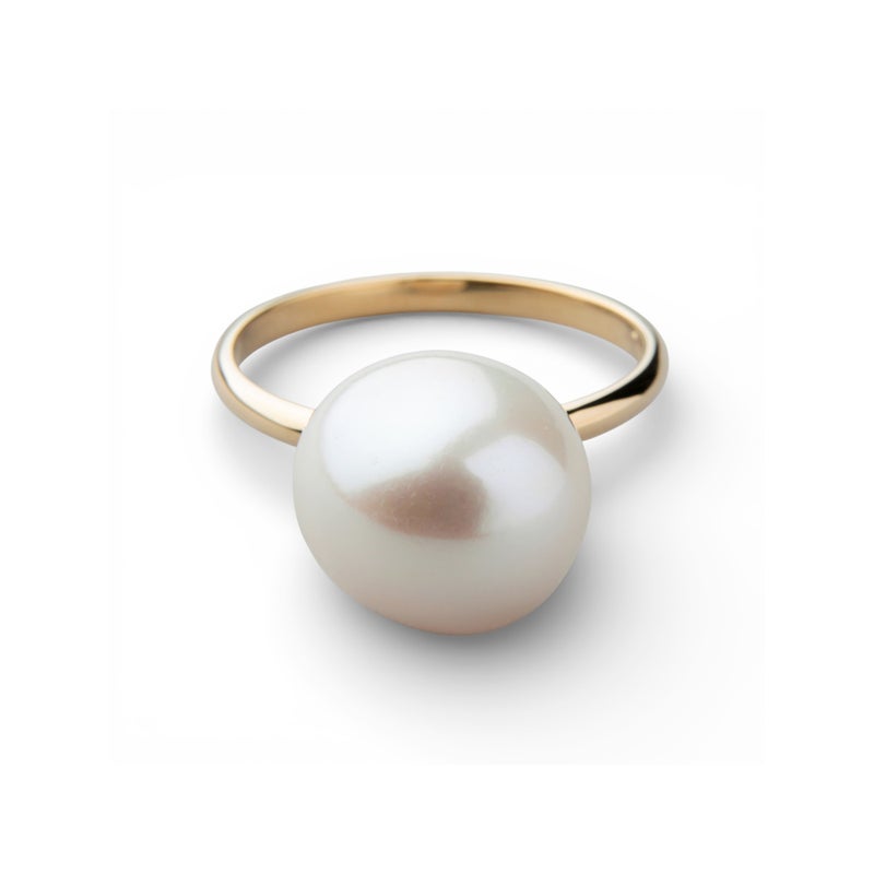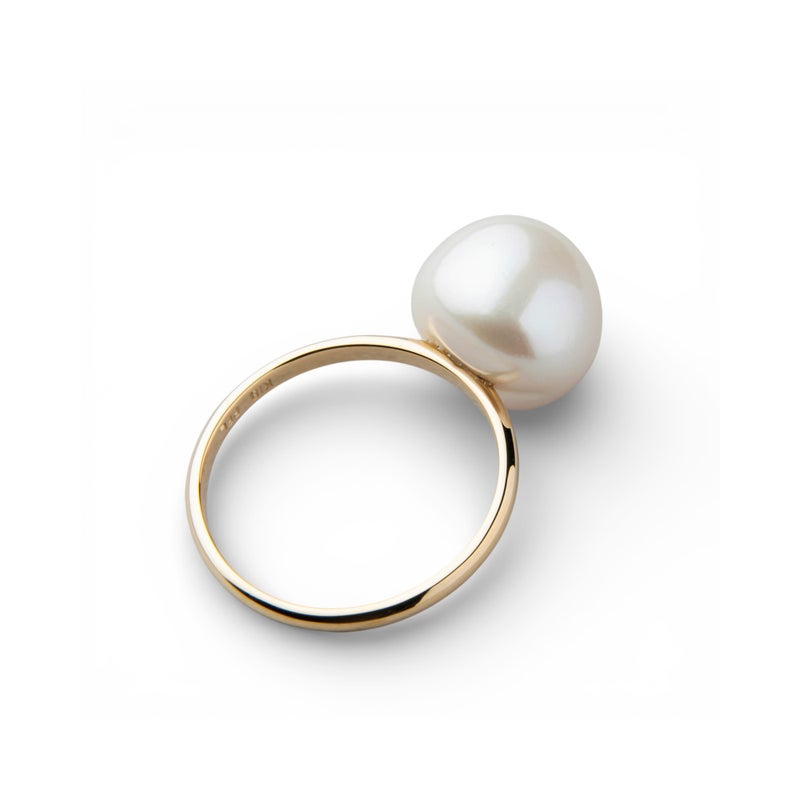 大粒のホワイトバロックパールがシンプルに映えるひと粒リング。