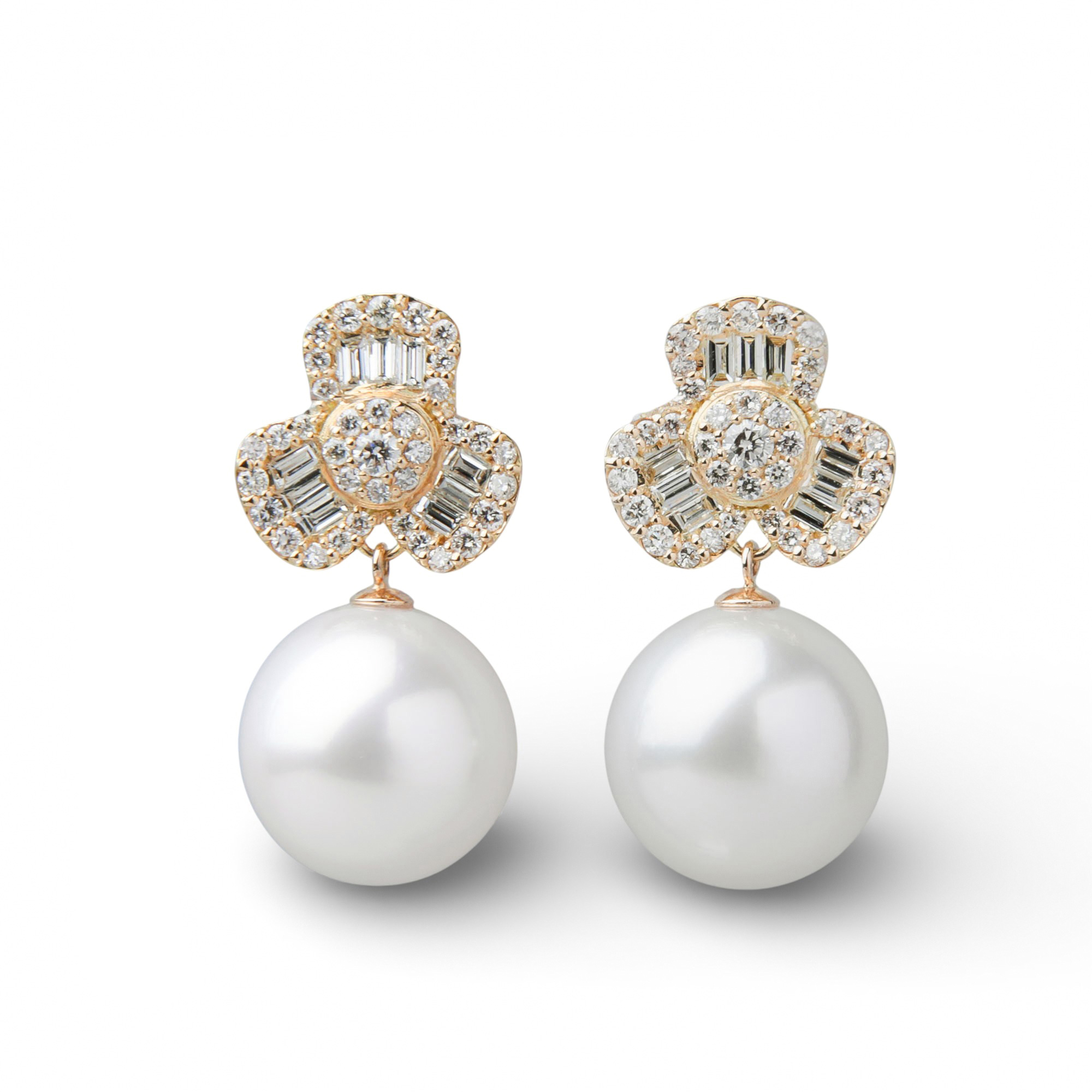 ぱっと目を引くインパクトはありつつ、南洋真珠の優美な輝きで上品な印象に。