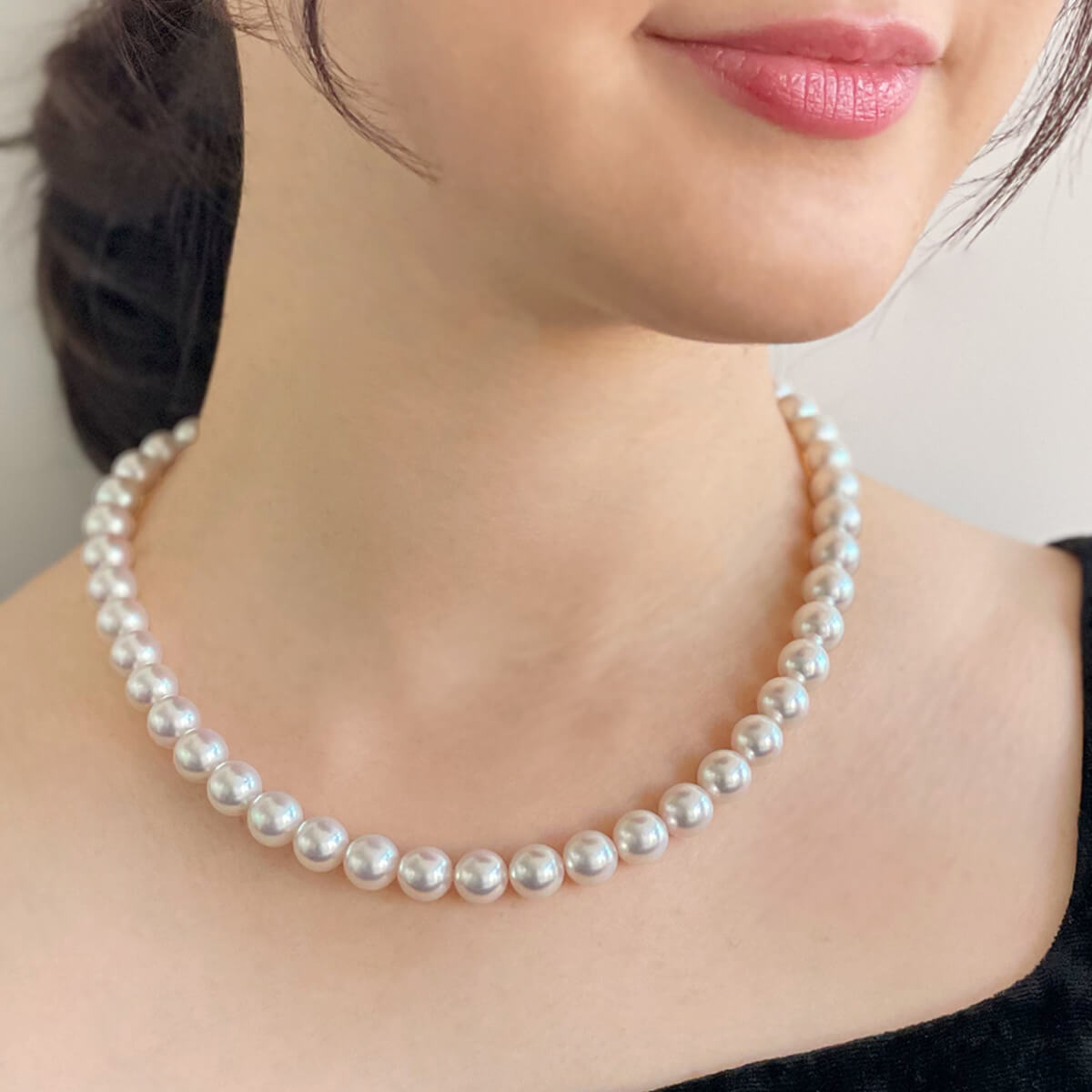 連相(ネックレスなどで並んだ時の統一感)…珠の色合いや大きさ、照りなどが全体として美しく調和しているかも品質を左右します。