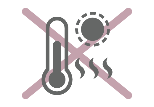 紫外線や熱や光の影響を受けやすいため、日当たりのいい場所や温度が高くなる場所の保管は避けてください。
