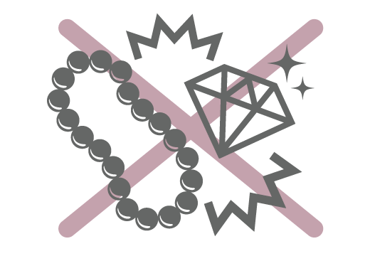 - ご入浴の際、水辺のレジャーや温泉では真珠製品は外してください。
